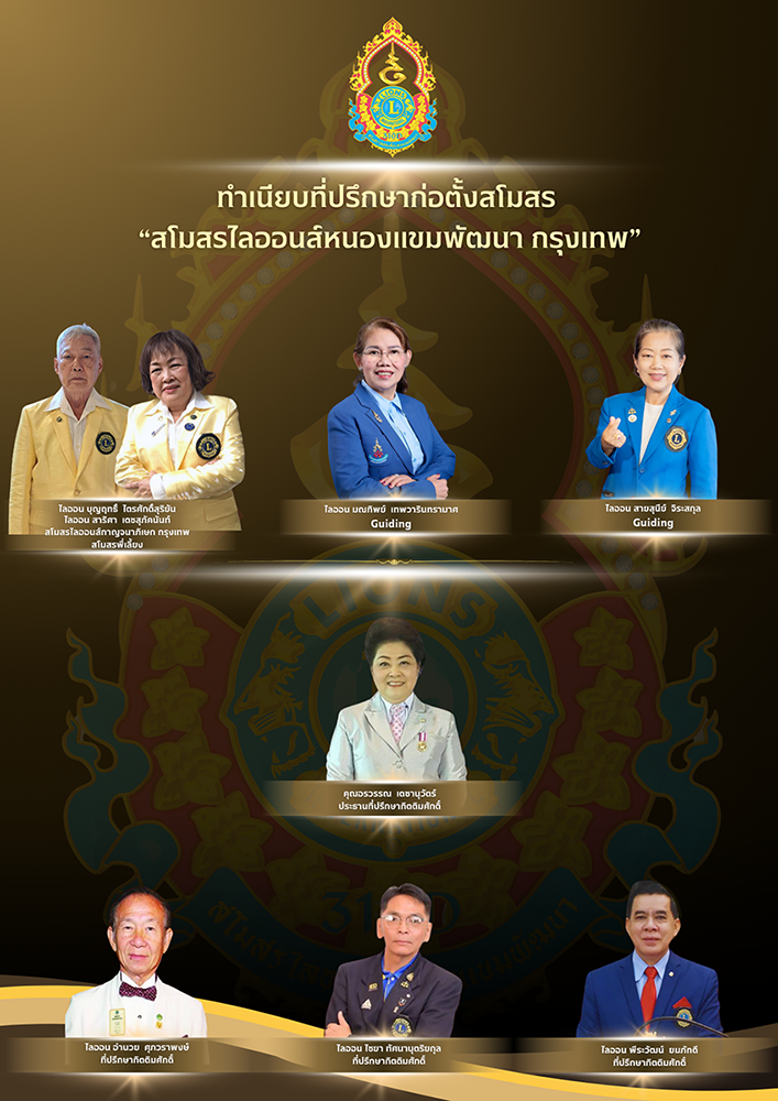 ทำเนียบที่ปรึกษาก่อตั้ง สโมสรไลออนส์หนองแขมพัฒนา กรุงเทพ